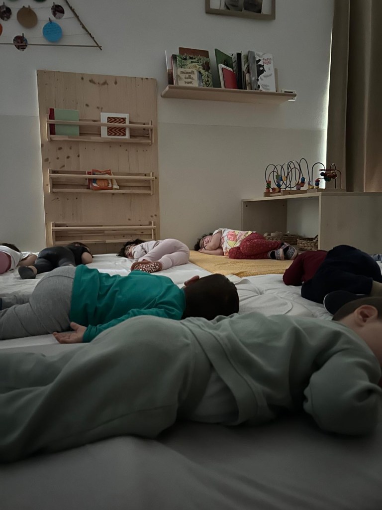 Nel nostro nido, il momento del riposino è pensato come una coccola dopo una mattinata ricca di scoperte ed emozioni. È un tempo lento, dolce, in cui ogni bambino può ritrovare calma e serenità, secondo i propri bisogni.